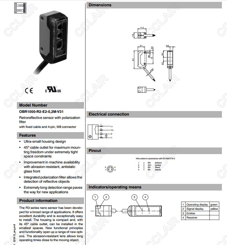 OBR1000-R2-E2-0,2M-V3,OBR1000-R2-E2-0,2M-V31,反射板型傳感器