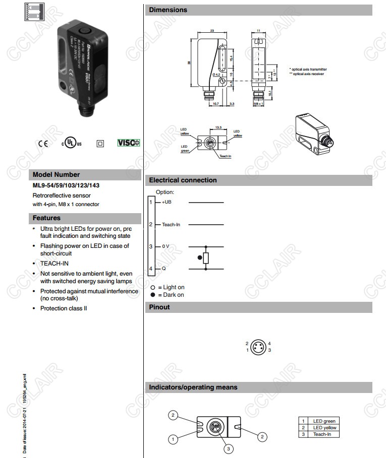 ML9-54/59/103/123/134a/143,ML9-54/59/103/123/143,反射板型傳感器