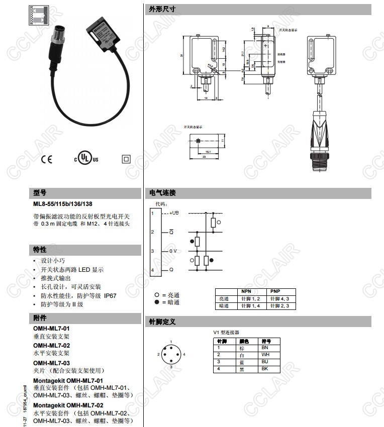 ML8-55/115b/136/138,反射板型傳感器
