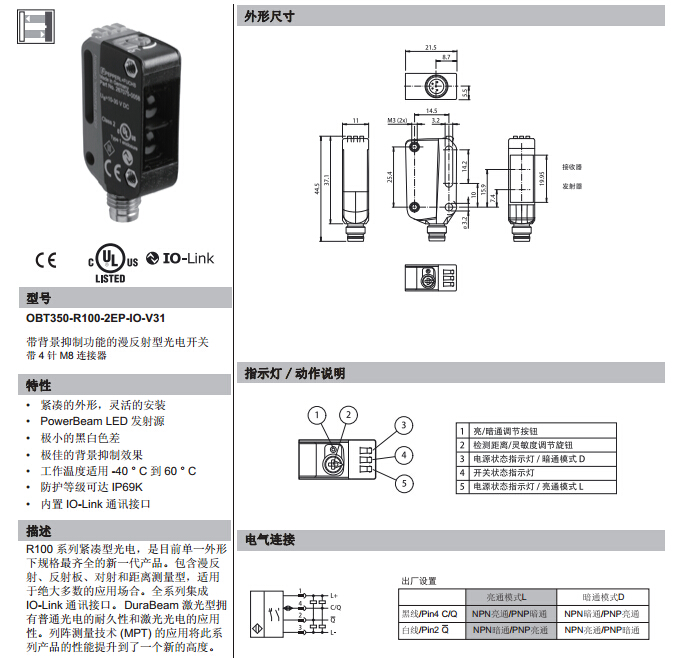 OBT350-R100-2EP-IO-V31,漫反射型傳感器