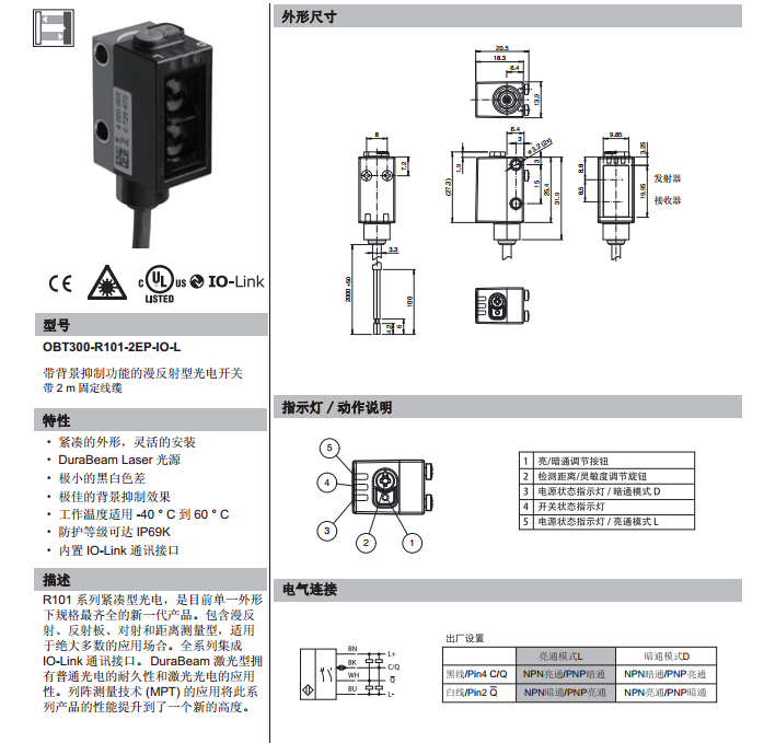 OBT300-R101-2EP-IO-L,漫反射型傳感器