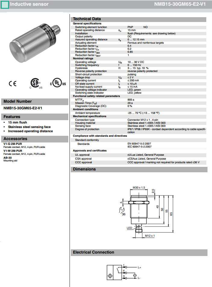 NMB15-30GM65-E2-V1感應式傳感器