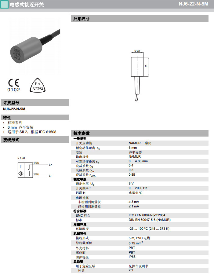 NJ6-22-N,NJ6-22-N-5M感應(yīng)式傳感器