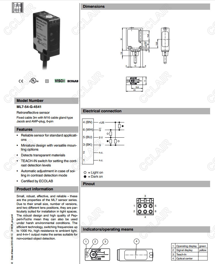 ML7-54-G-4541,ML7-54-G/102/115/126b,反射板型傳感器
