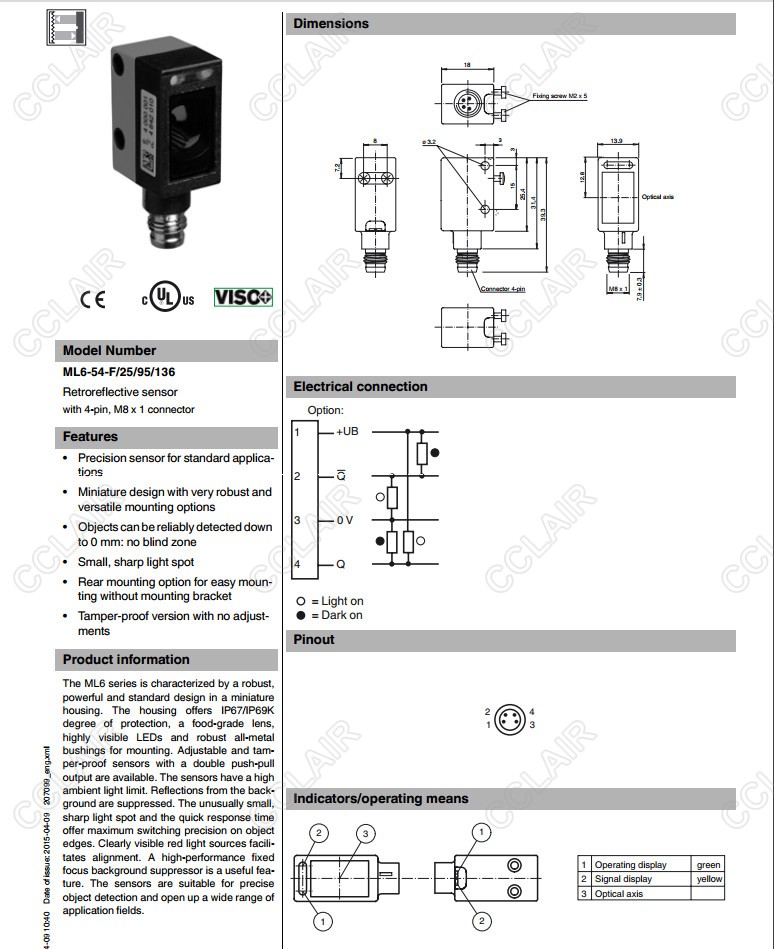 ML6-54-F/25/95/136,ML6-54-F/82b/95/110,反射板型傳感器