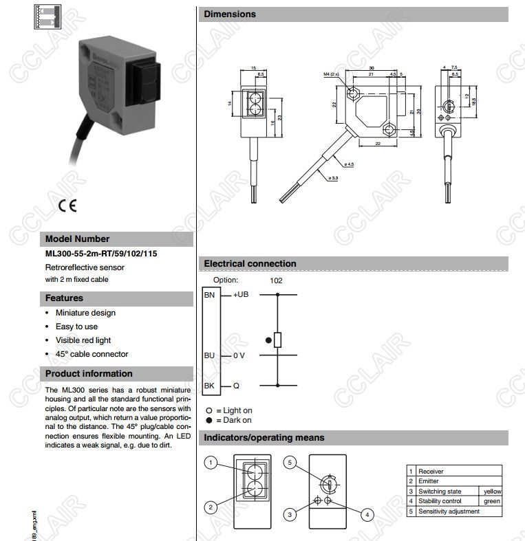 ML300-55-2m-RT/59/102/115,ML300-55-2m-RT/59/103/115,反射板型傳感器