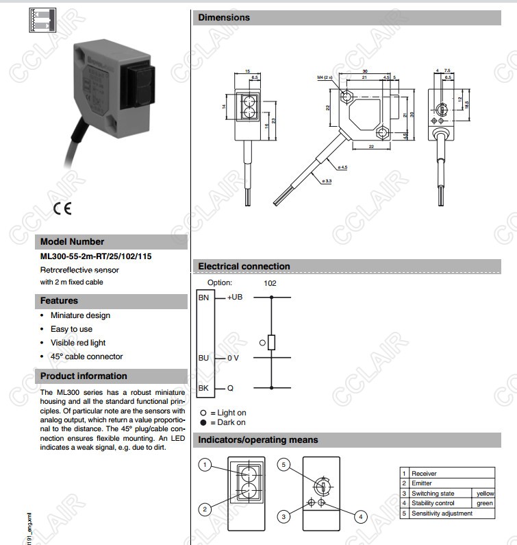ML300-55-2m-RT/25/102/115,ML300-55-2m-RT/25/103/115,反射板型傳感器