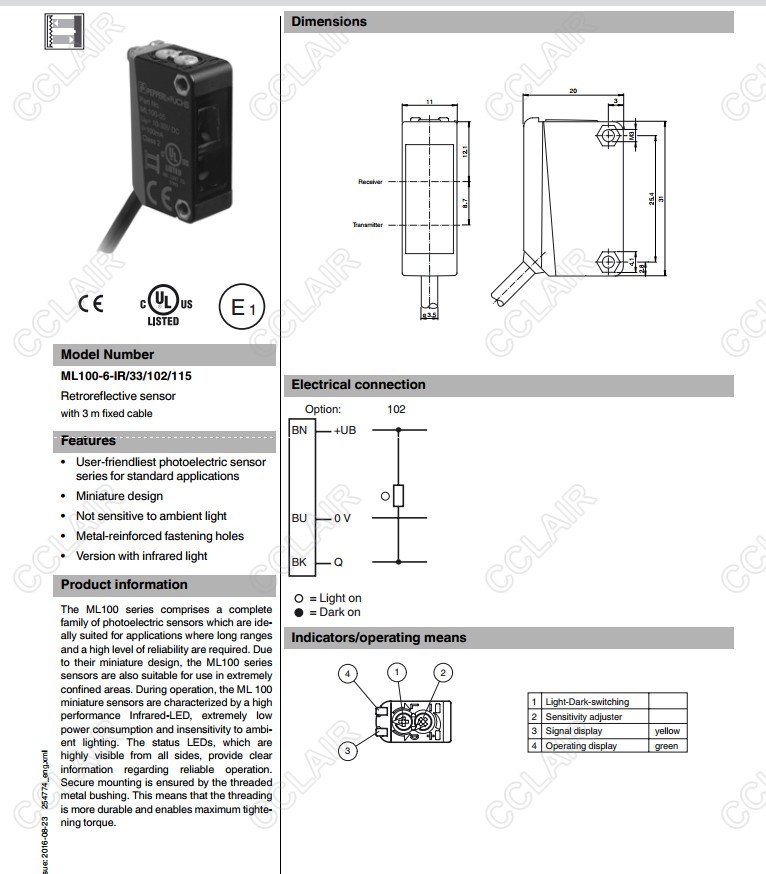 ML100-6-IR/33/102/115,反射板型傳感器