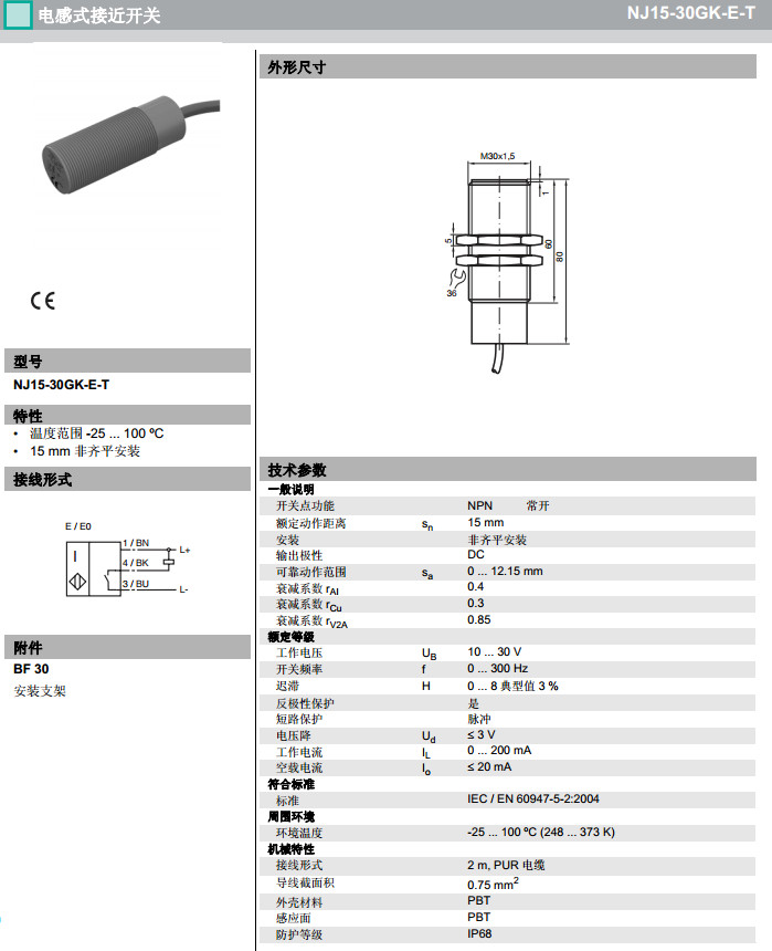 NJ15-30GK-E-T,NJ15-30GK-E2-T,NJ15-30GK-E2-T-5M感應(yīng)式傳感器