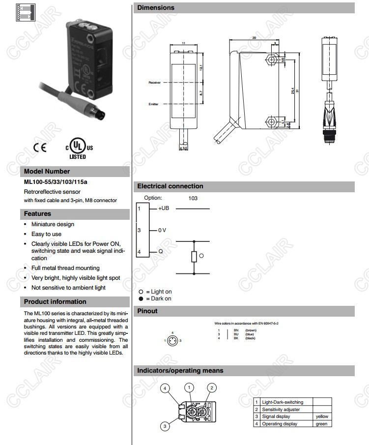ML100-55/33/103/115a,反射板型傳感器