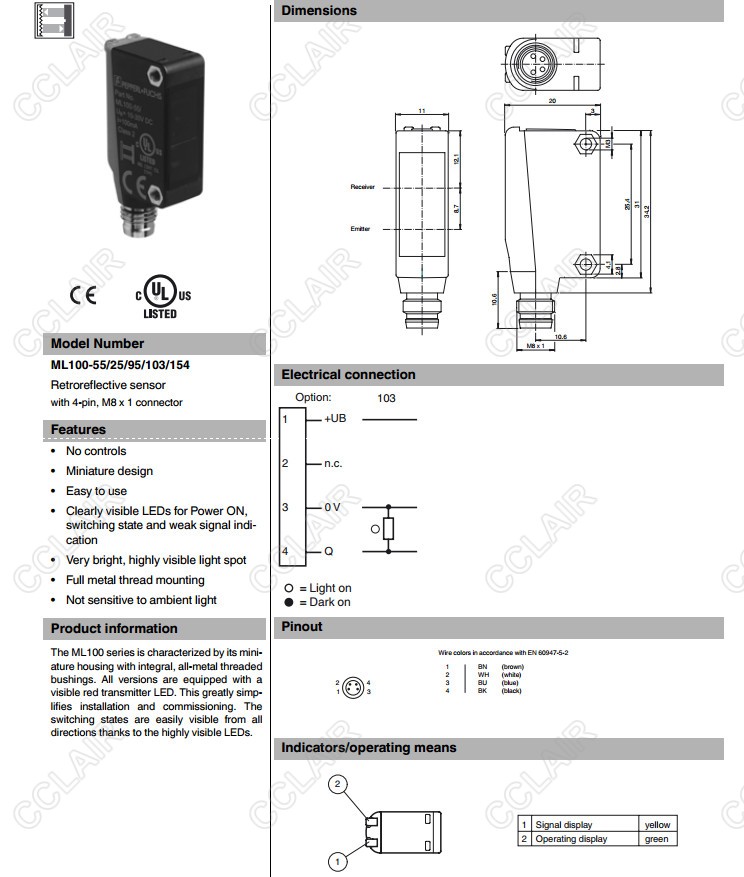 ML100-55/25/95/103/154,反射板型光電開關(guān)
