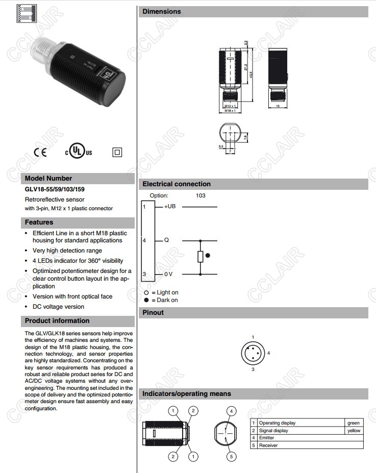 GLV18-55/59/103/159,GLV18-6/59/102/159,反射板型傳感器