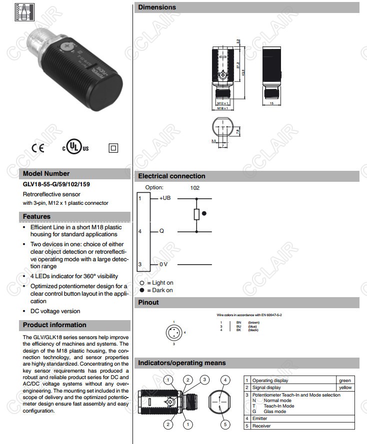 GLV18-55-G/59/102/159,反射板型傳感器