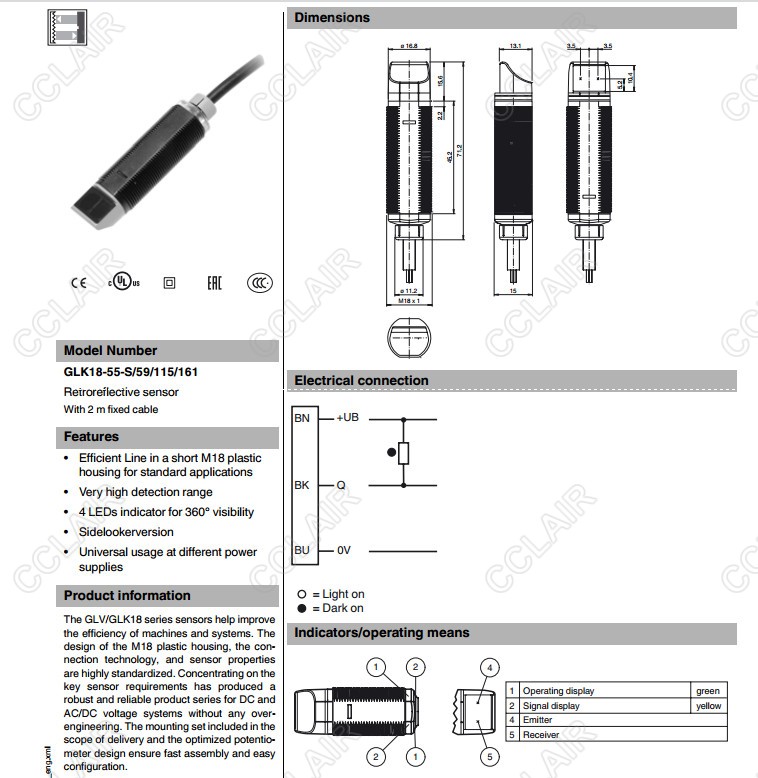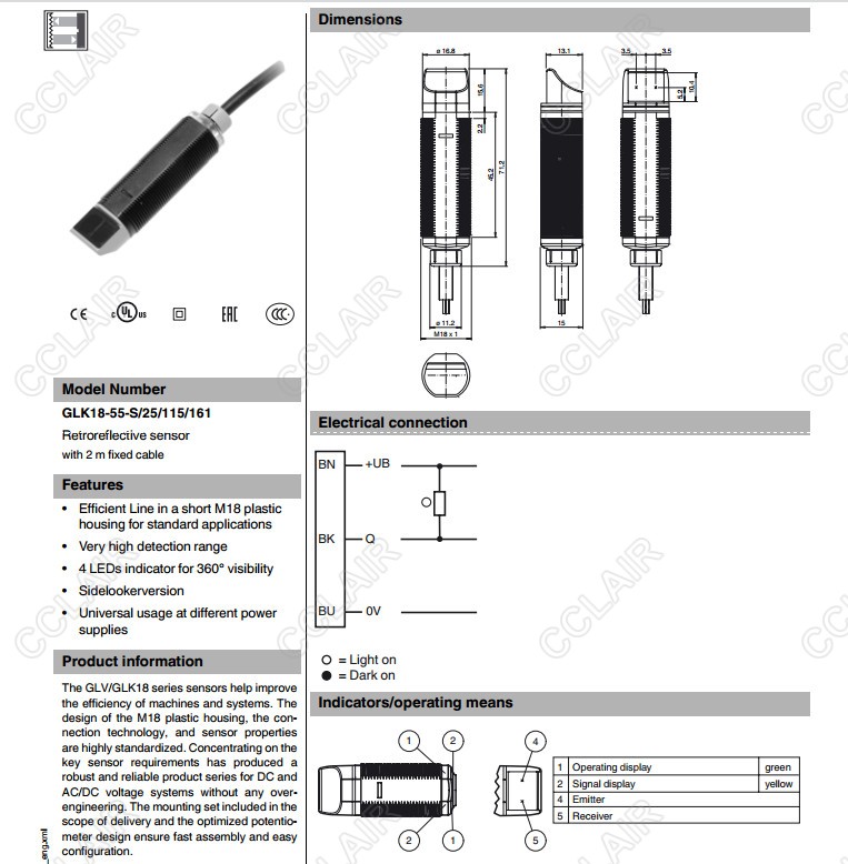 GLK18-55-S/25/115/161,GLK18-55-S/59/115/161,反射板型光電開關(guān)