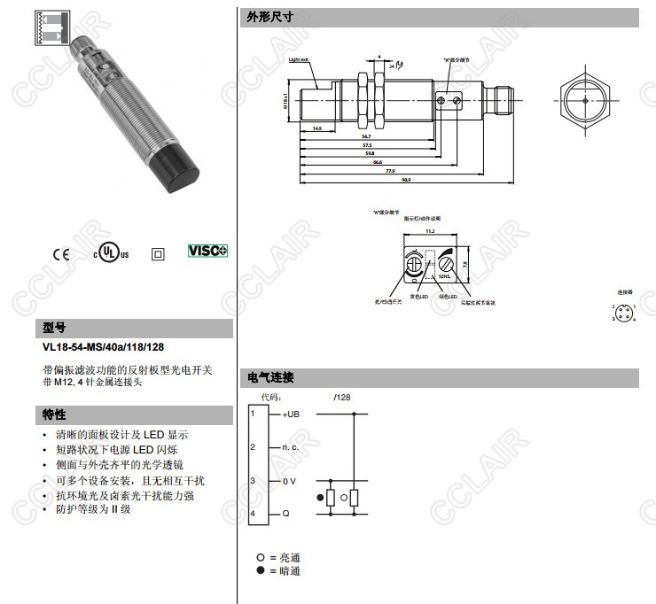 VL18-54-MS/40a/118/128,反射板型傳感器