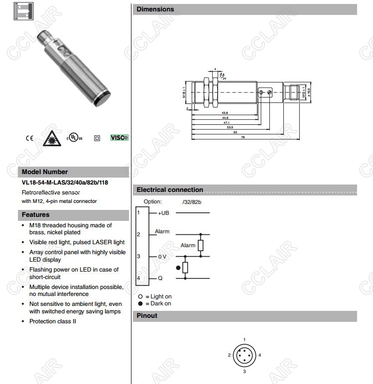 VL18-54-M-LAS/32/40a/82b/118,VL18-54-M-LAS/40a/118/128,反射板型傳感器