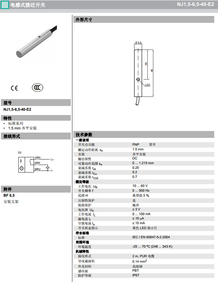 NJ1,5-6,5-40-E2,NJ1,5-6,5-40-E2-5M感應式傳感器
