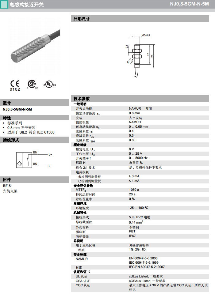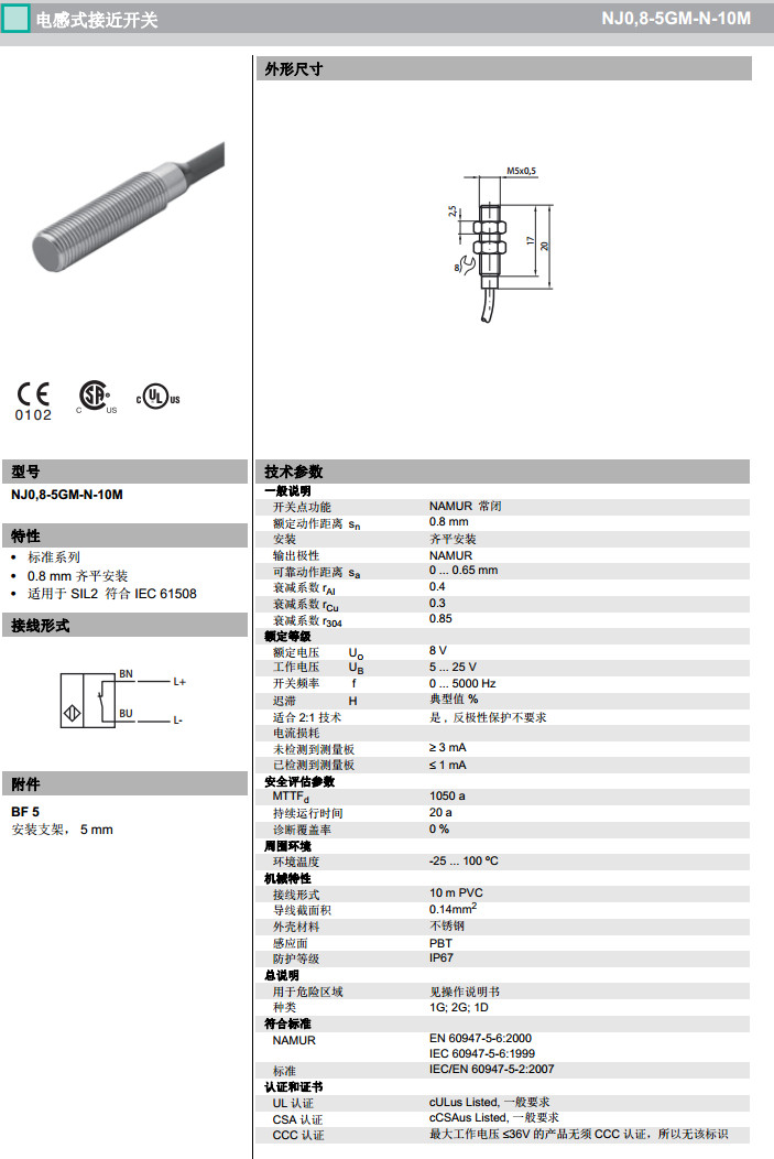 NJ0,8-5GM-N-10M,NJ0,8-5GM-N-5M,NJ0,8-5GM-N-Y18620感應式傳感器