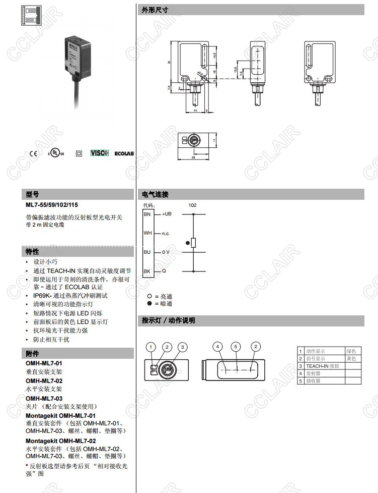ML7-55/59/102/115,反射板型傳感器