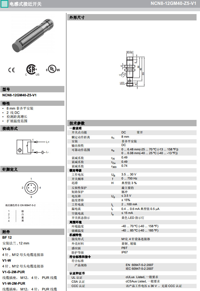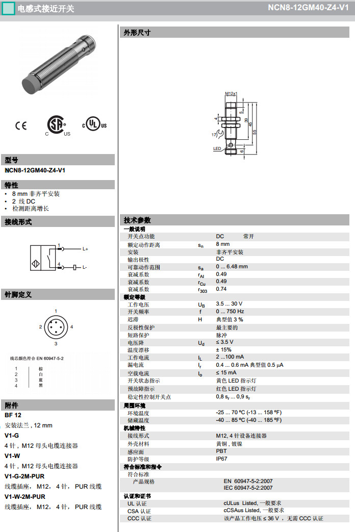 NCN8-12GM40-Z4-V1,NCN8-12GM40-Z5-V1感應式傳感器