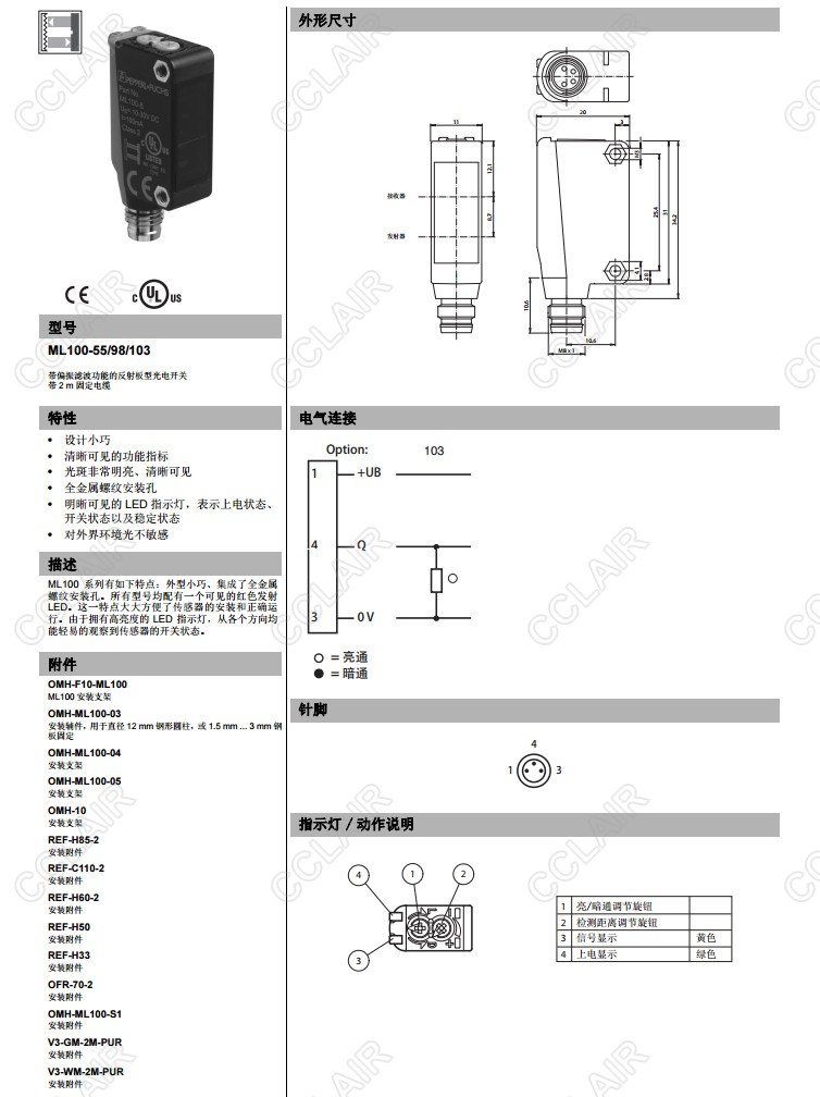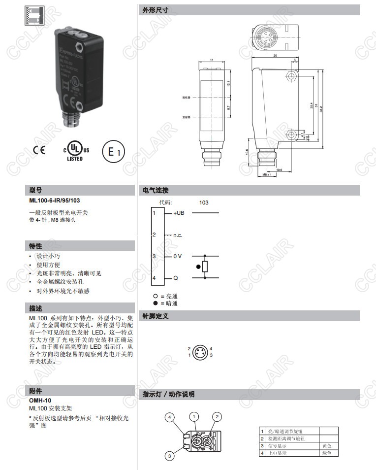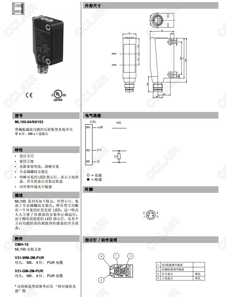 ML100-54/95/102,ML100-54/95/103,ML100-55/98/103,ML100-6-IR/95/103,反射板型傳感器