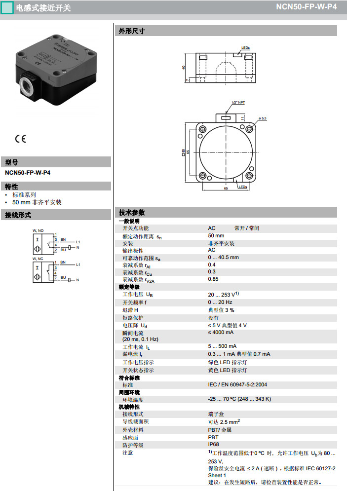 NCN50-FP-W-P4感應(yīng)式傳感器