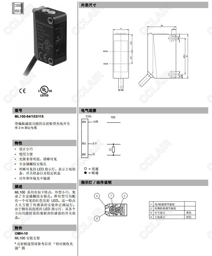 ML100-54/102/115,ML100-54/103/115,反射板型傳感器