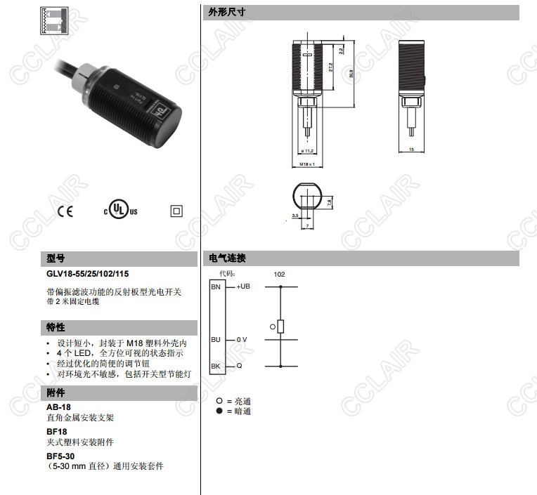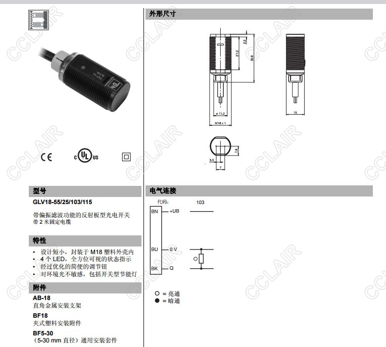 GLV18-55/25/102/115,GLV18-55/25/103/115,反射板型傳感器