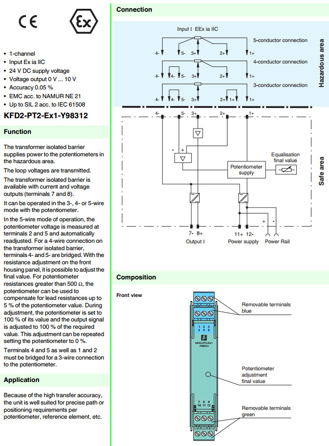 KFD2-PT2-Ex1-Y98312,信號轉(zhuǎn)換安全柵