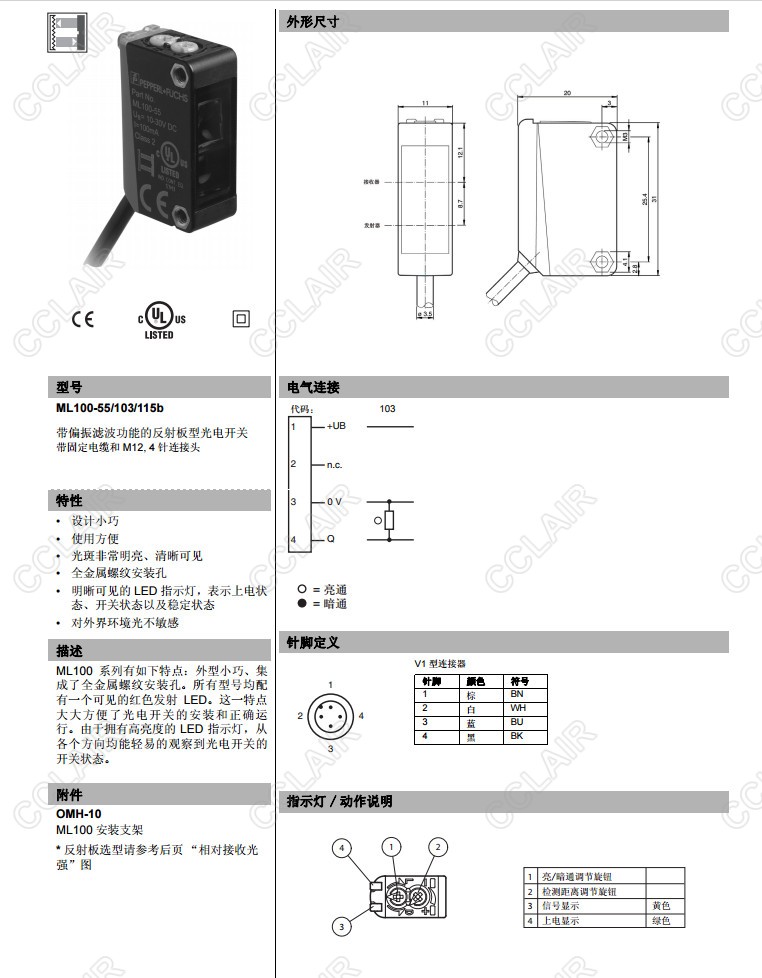 ML100-55/103/115b,反射板型光電開(kāi)關(guān)