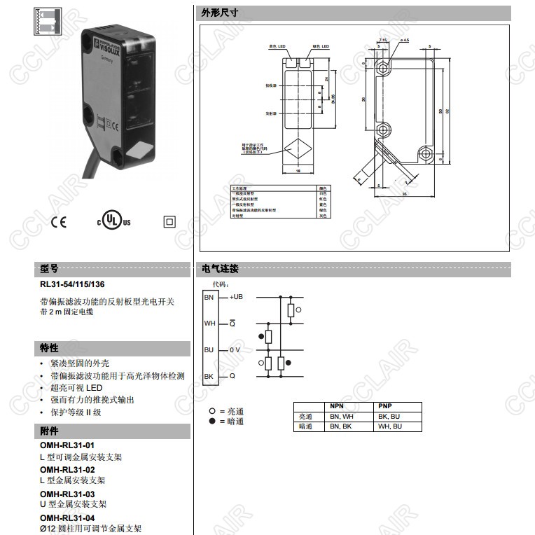 RL31-54/115/136,反射板型傳感器