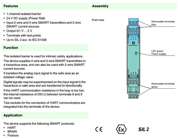 KFD2-STV4-Ex1-1,模擬量輸入安全柵