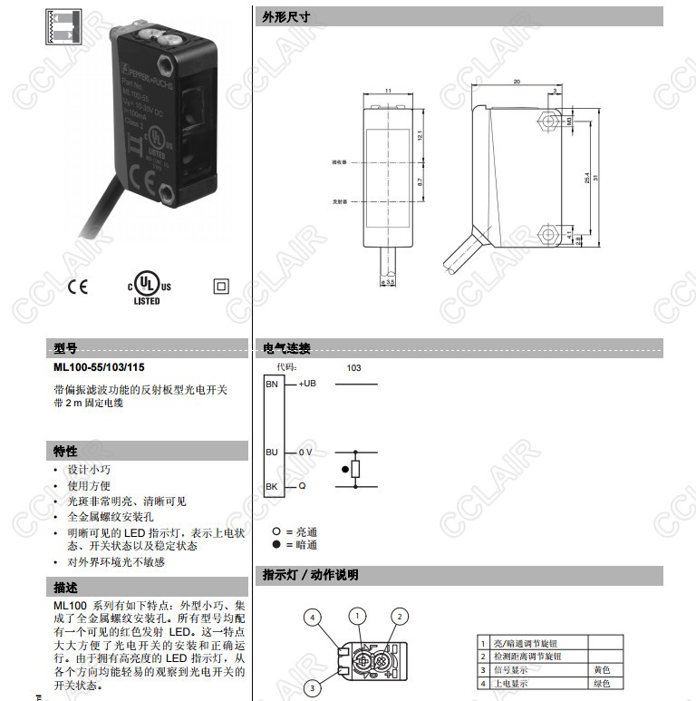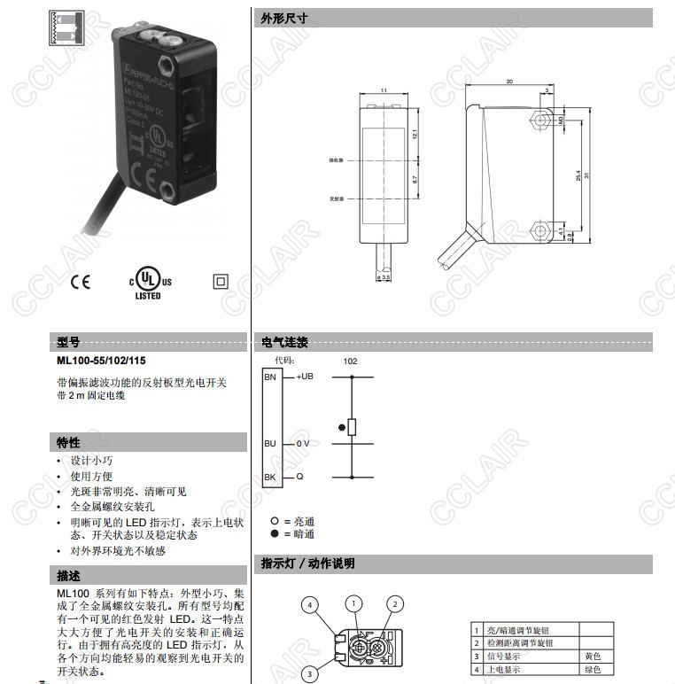 ML100-55/102/115,ML100-55/103/115,反射板型傳感器