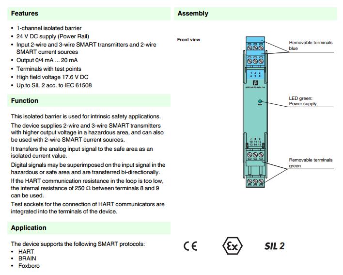 KFD2-STC4-Ex1.H,模擬量輸入安全柵