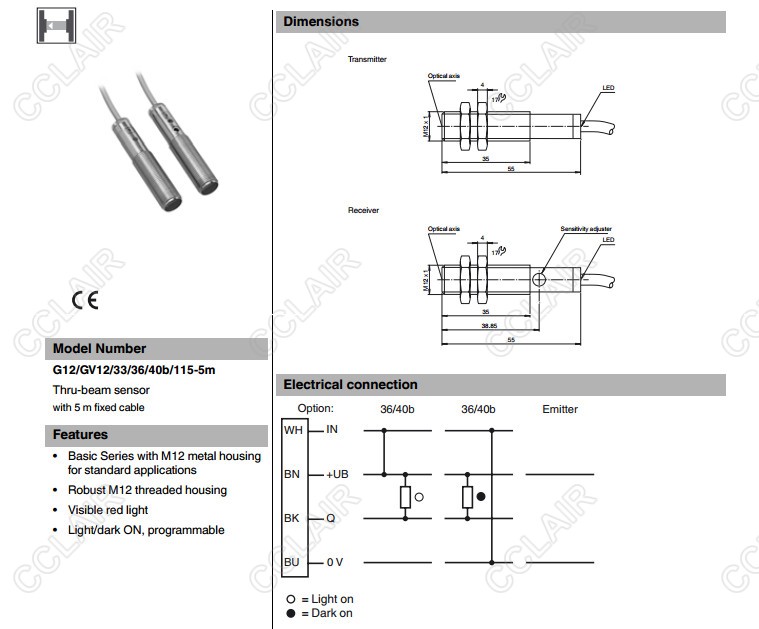 G12/GV12/33/36/40b/115-5m,對(duì)射型光電開關(guān)