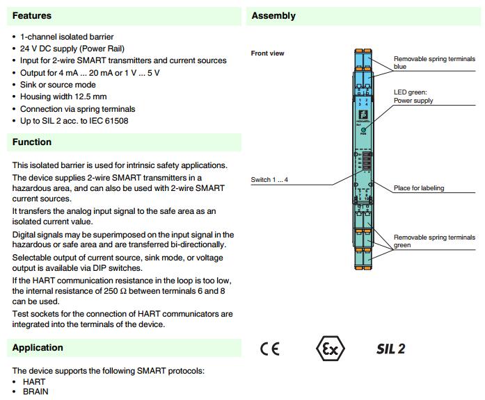 KCD2-STC-Ex1.SP,模擬量輸入安全柵