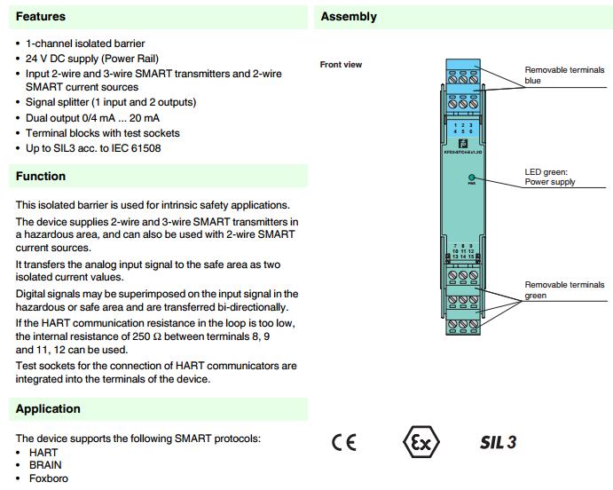 KFD2-STC4-Ex1.2O,模擬量輸入安全柵