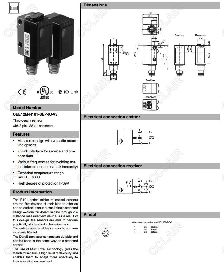 OBE12M-R101-SEP-IO-V3,對(duì)射型傳感器