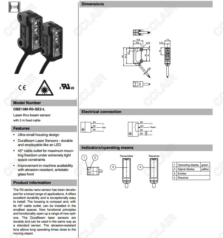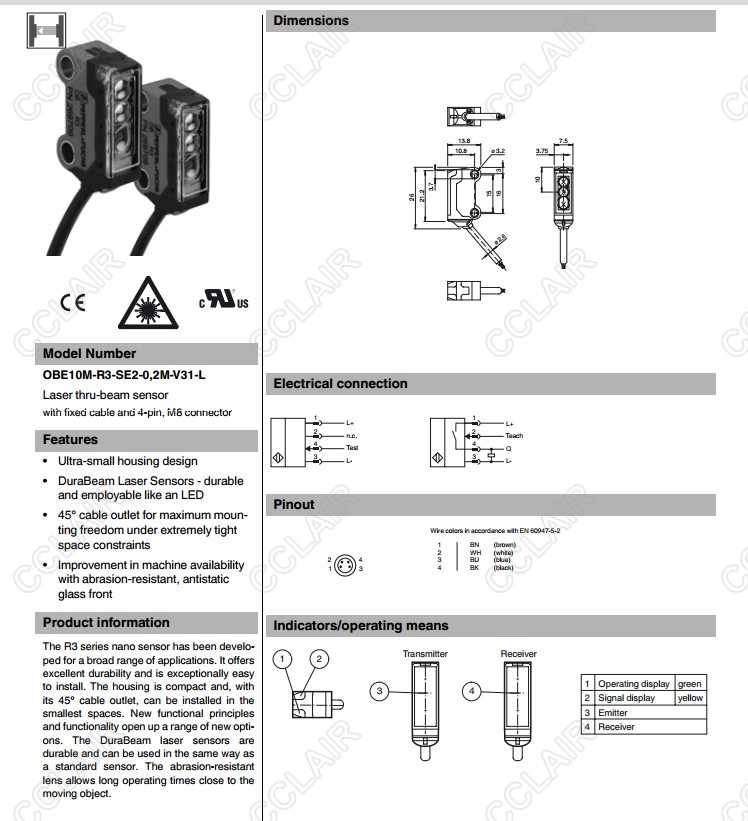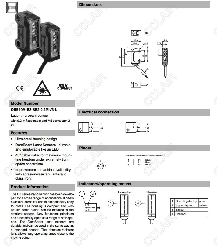 OBE10M-R3-SE2-0,2M-V3-L,OBE10M-R3-SE2-0,2M-V31-L,OBE10M-R3-SE2-L,對(duì)射型傳感器