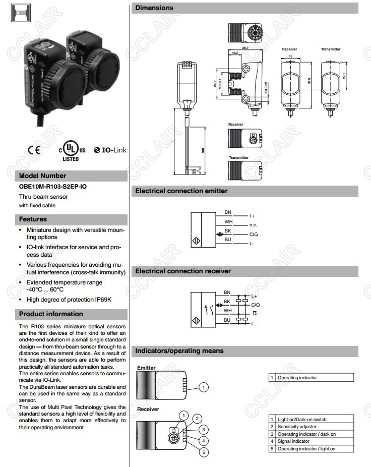 OBE10M-R103-S2EP-IO,對射型傳感器