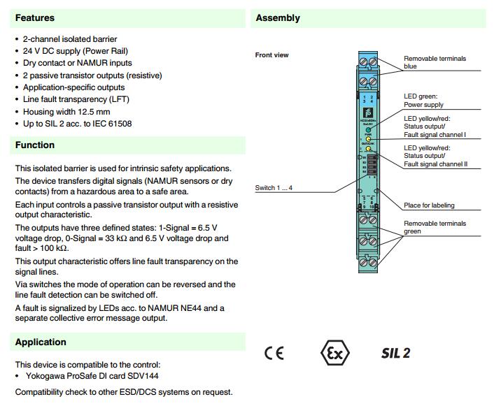 KCD2-SON-Ex2.R1,開(kāi)關(guān)量輸入安全柵