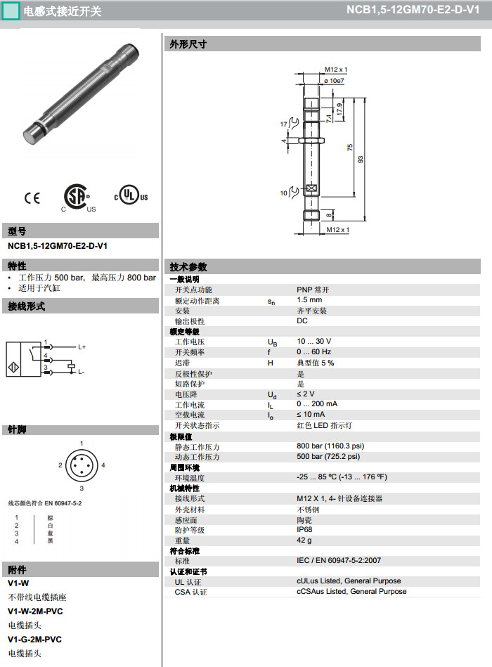 NCB1,5-12GM70-E2-D-V1感應式傳感器