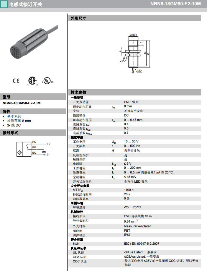 NBN8-18GM50-E2-10M,NBN8-18GM50-E2-5M,感應(yīng)式傳感器