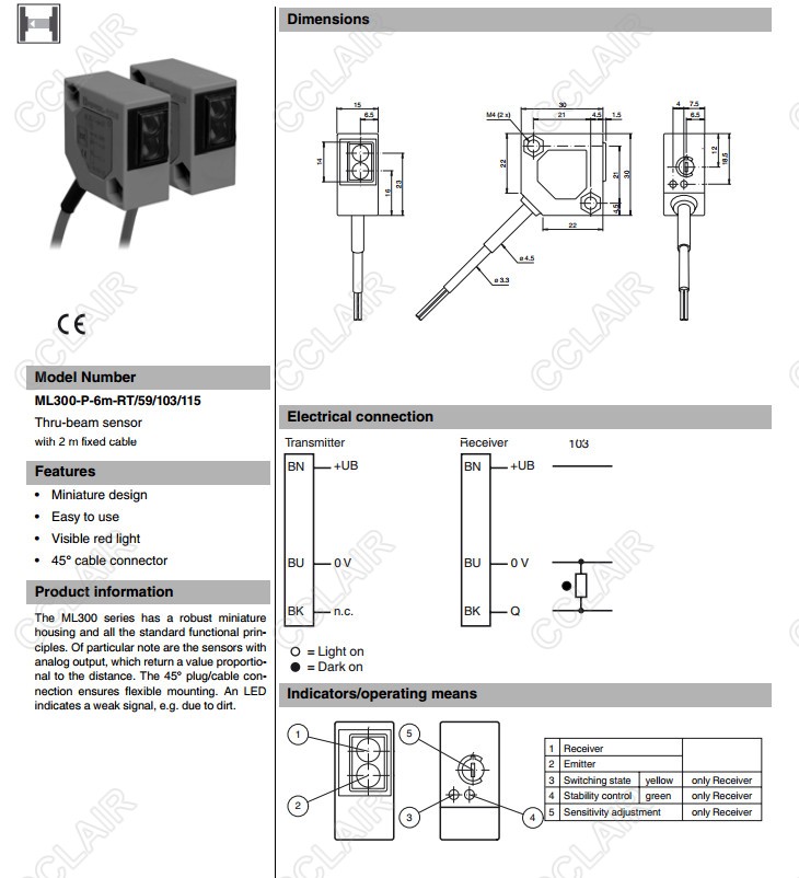 ML300-P-6m-RT/59/103/115,對射型傳感器