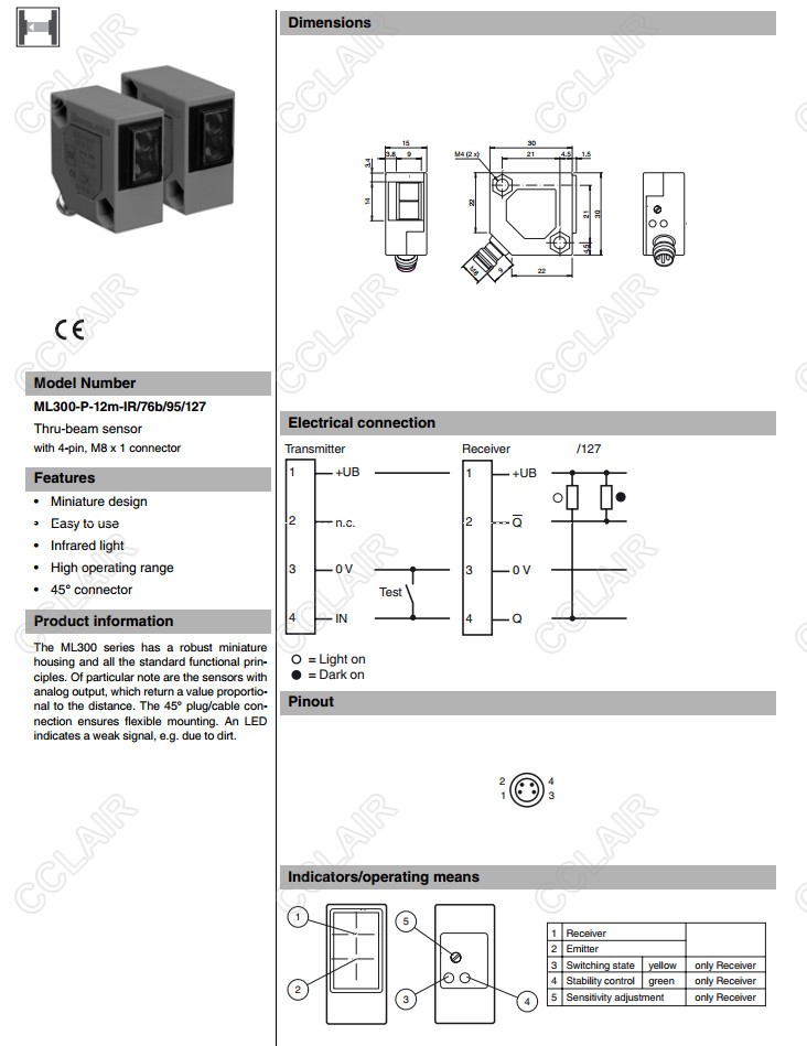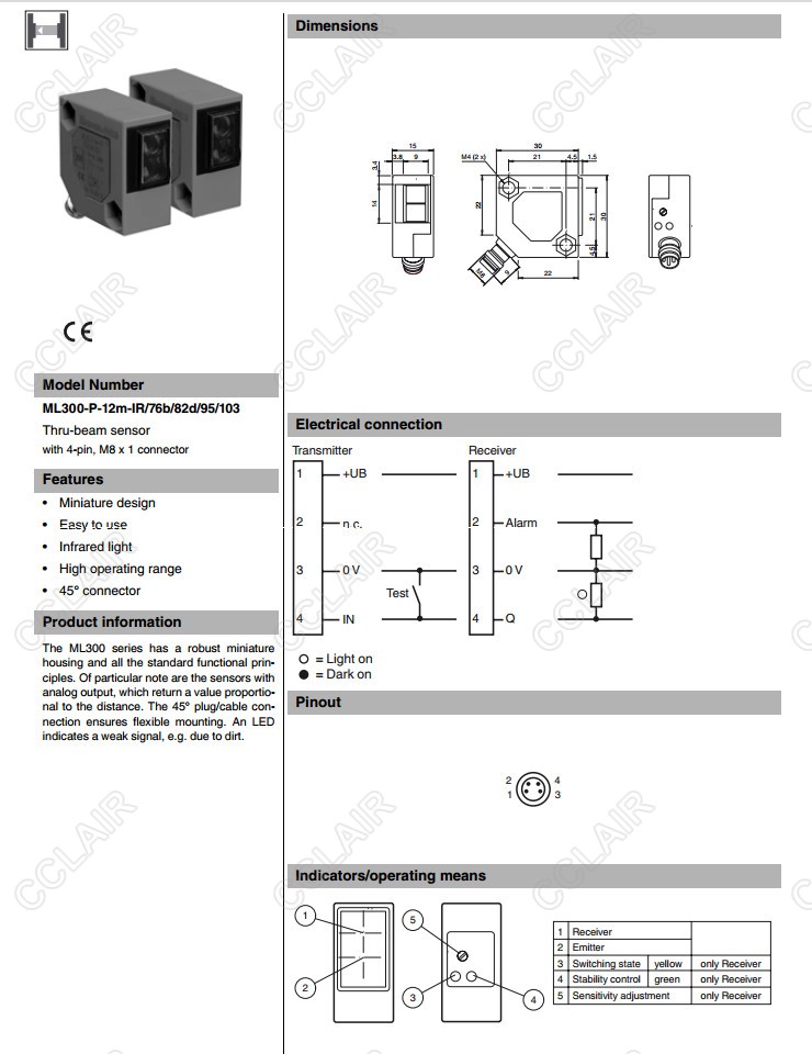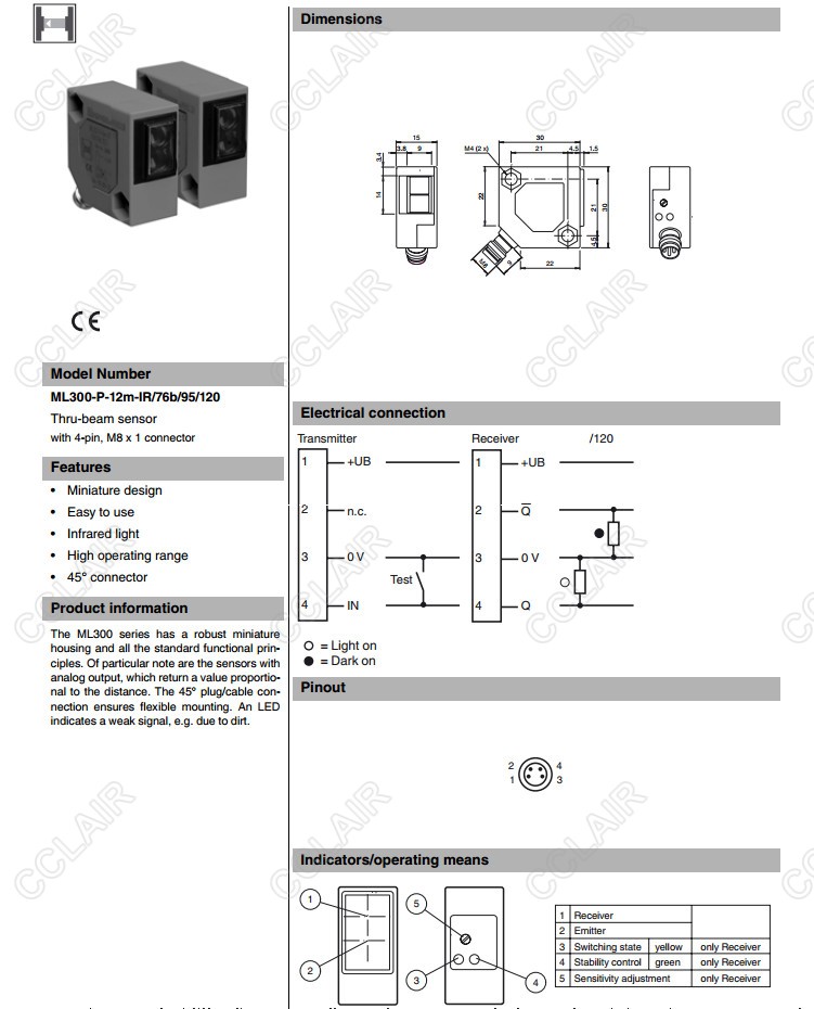 ML300-P-12m-IR/76b/82d/95/103,ML300-P-12m-IR/76b/95/120,ML300-P-12m-IR/76b/95/127,對射型傳感器 |