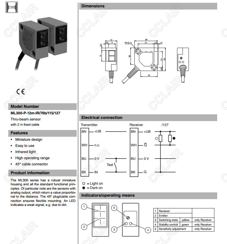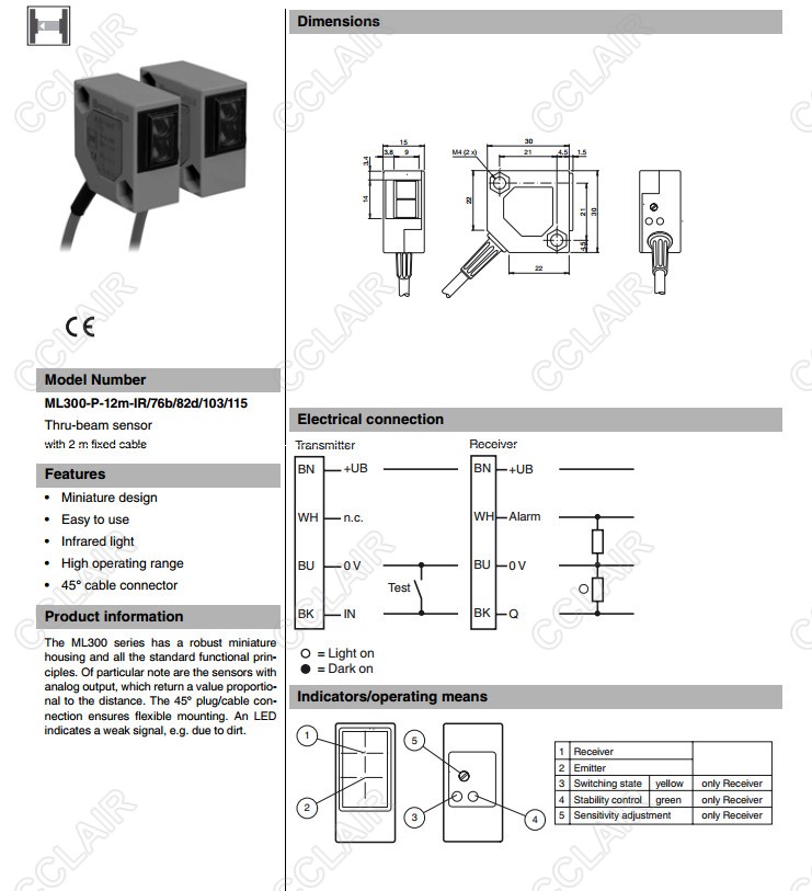 300-P-12m-IR/76b/115/127,ML300-P-12m-IR/76b/82d/103/115,對(duì)射型傳感器