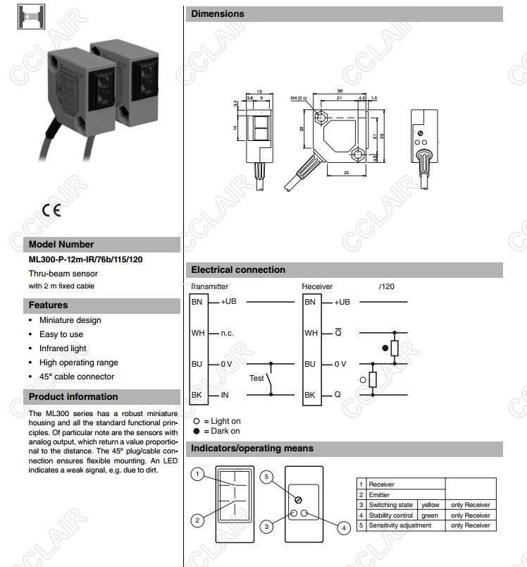 ML300-P-12m-IR/76b/115/120,對(duì)射型傳感器
