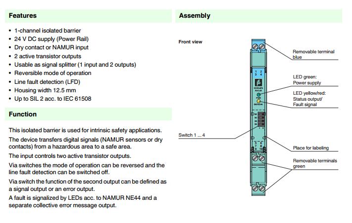 KCD2-ST-Ex1.LB,開關(guān)量輸入安全柵
