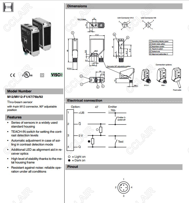 M12/MV12-F1/47/76b/92,M12/MV12-F1/76b/82b/95/128,對(duì)射型傳感器