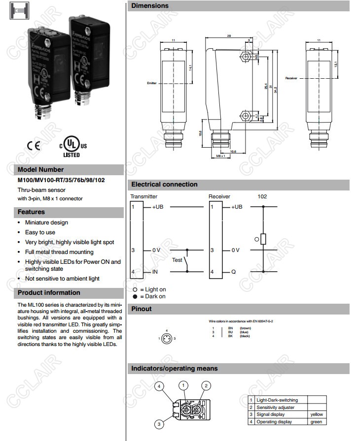 M100/MV100-RT/35/76a/98/103,M100/MV100-RT/35/76b/98/102,對(duì)射型傳感器